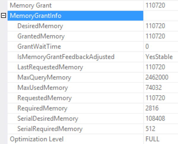Но это все. Нет счетчиков Perfmon, чтобы показать, что это происходит. Чтобы диагностировать проблемы с ним, вам нужно будет выкинуть Books Online и настроить сеанс расширенных событий, наблюдая за memory_grant_updated_by_feedback и memory_grant_feedback_loop_disabled.